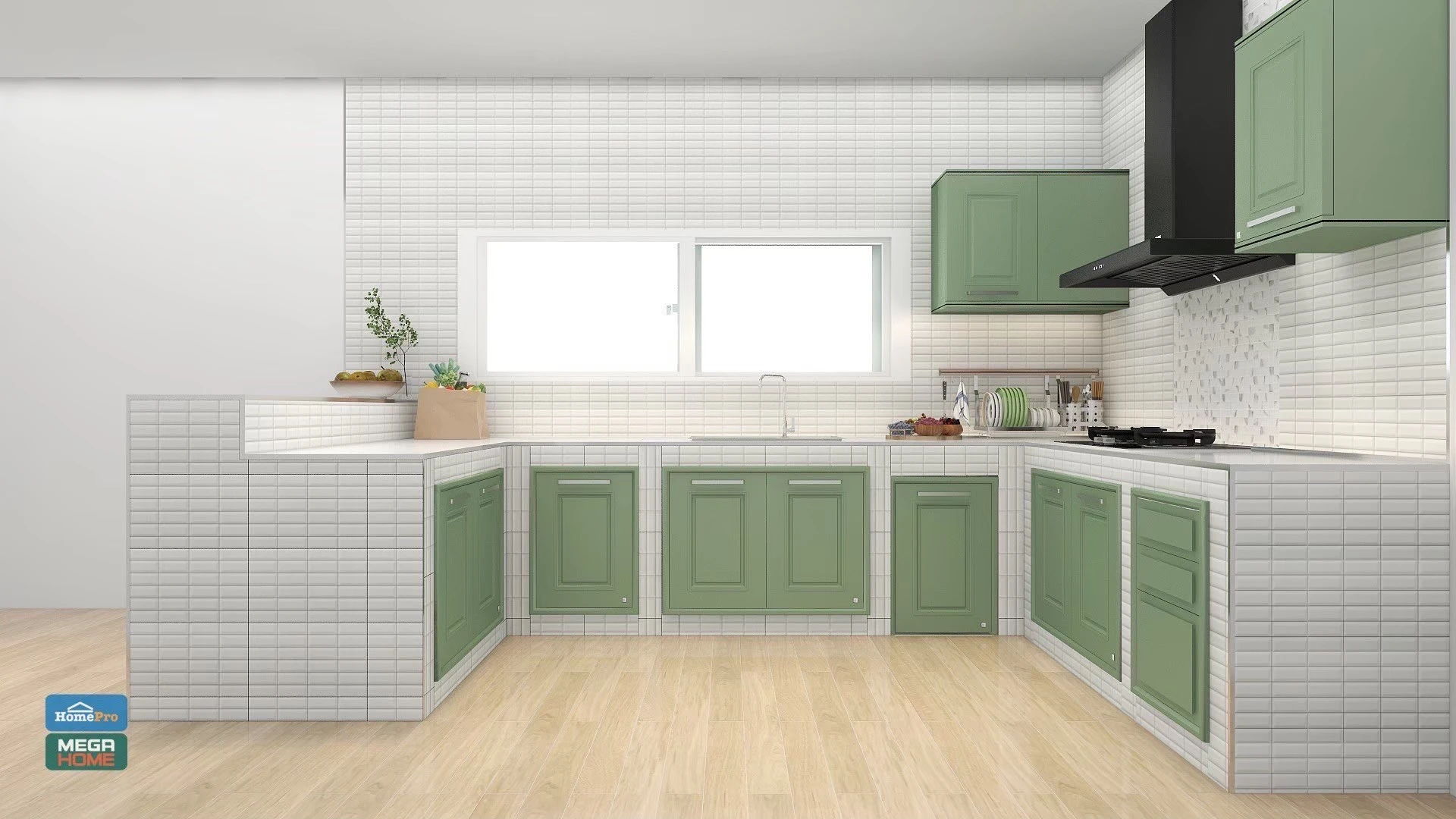 ห้องครัวโทนสีเขียวสไตล์ธรรมชาติ