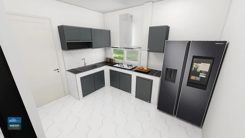 นอกจากนี้การจัดวางเคาน์เตอร์ครัวในรูปแบบ L Shape หรือครัวตัวแอล ยังช่วยเพิ่มพื้นที่ในการทำอาหาร และทำให้การใช้งานในครัวสะดวกมากขึ้น